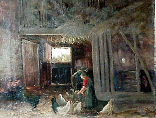 Geesje Mesdag - van Calcar Boerenpaar in stal met pluimvee Olie op doek, 55 x 70 cm Fraeylemaborg 2003, Panorama Mesdag 2004 Catalogusnummer G140 Gemeente Hoogezand - Sappemeer