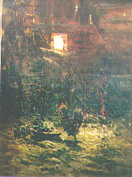 Calcar Schuur met kip Olie op paneel, 23 x 17 cm Catalogusnummer G30 Particuliere collectie