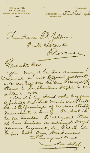 meest productieve jaren volgen net op die omslag: 1906 tot 1920. Maar diep in zijn hart was er toch een onverwerkt verleden. Na zijn dood werd het briefje van de advocaat ontdekt onder de papiervoering van zijn bureaula. |