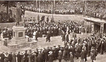 Het werd op 12 juni 1918 onthuld in aanwezigheid van koningin Wilhelmina en prins Hendrik. Het jaartal zou kunnen wijzen op een 250-jarige herdenking van de Vrede van Breda en de Vrede van Aken, beide belangrijke verdiensten van De Witt. In de toespraak na de opening, gehouden in Pulchri Studio door de historicus dr. N. Japikse, wordt echter niet op die 250 jaar gezinspeeld. De tijd was kennelijk rijp voor dit eerbetoon aan de in 1672 zo gruwelijk aan hun eind gekomen broers. Ze waren door de schutterij gedood en door de opgehitste omstanders als varkens opengesneden en op Het Groene Zoodje bij de Gevangenpoort aan een paal gehangen. Er had een controverse bestaan tussen de stadhouder en de raadpensionaris, die inmiddels al ontslag had genomen. De dubieuse rol van stadhouder Willem III, verre verwant van koningin Wilhelmina, is echter nooit opgehelderd. Zeker is dat hij vervolging van de daders heeft tegengehouden en hun zelfs gunsten heeft verleend.