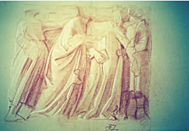 gefascineerd werd. In 1902 dingt Free mee naar de Prix de Rome voor de beeldhouwkunst, en wint de eerste prijs met haar beeld De Smart (gips, 56 bij 120 cm, zie Beeldenzaal). De Prix de Rome is een vergelijkend examen, dat na het toelatingsexamen nog twee stadia kende, de proefkamp en de eindkamp. In de proefkamp had Free gekozen voor dit keuzethema, de smart, en dat uigewerkt in het hiernaast afgebeelde ontwerp in klei. Het meet slechts 14 bij 21 cm, maar het moest in één dag af zijn. |