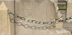 symbolisch herdacht door een jeugdigen figuur". Jeltsema heeft ze gemaakt voor een bedrag van 2523,20 gulden: voor "2 figuren ingangen zijgevels" volgens het kasboek van 1919. In afwijking van het oorspronkelijke plan werd in de zijgevels ook boven de twee poorten, met doorgang langs de binnenplaats, een beeld aangebracht. De beeldhouwer J. Keller, die in Engeland hoogleraar was, maakte hiervoor personificaties van De Plicht en de Tijd. |