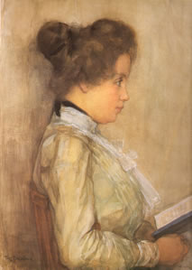 ![]() Afb. 4. Piet Mondriaan, Portret van een dame Aquarel, 1900, Gemeentemuseum Den Haag |
