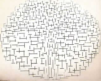 ![]() Afb. 12. Piet Mondrian, Pier en Oceaan 1915, kubisme-periode Rijksmuseum Kröller-Müller |