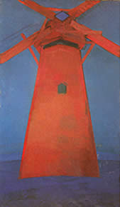 ![]() Afb. 8. Piet Mondriaan, De Rode Molen 1910 Gemeentemuseum Den Haag (invloed Gabriels In de mand Juli?) |