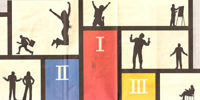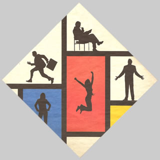 Afb. 5. Twee illustraties uit de NRC van 29 november 2012 door Ron van Roon,naar het lijkt geïnspireerd door Mondrian |