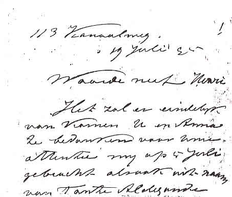 De brief van zes kantjes van Gabriel aan zijn neef Henri eindigt in de marge met hartelijke "groeten indien ik te A. kom zoek ik U op. Oom Constan." Constan, geschreven zonder een t. Dat is in lijn met de fonetische schrijftrant van Gabriel. Maar je ziet het ook in de voornaamverkorting Stan, die eveneens bij de grondvorm Constantinus hoort. Dit lijkt de enige brief, ondertekend met zijn roepnaam, want het blijkt dezelfde brief te zijn die via een veiling en een royale kunsthandel bij het Rijksprentenkabinet is terecht gekomen. Waarna R.J.A. te Rijdt er ook uit concludeert in het Bulletin van het Rijksmuseum van 2007 dat Paul eigenlijk Constan moet zijn. Te Rijdt is de eerste die dit wereldkundig maakt. Over het ontbreken van een trema op de achternaam zegt hij ten onrechte niets. |