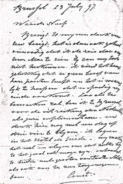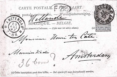 ![]() Briefkaart van P.J.C. Gabriel vanuit Brussel, 1897, aan neef Henri ten Cate en ondertekend met Const |