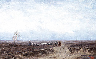 | Taco Mesdag Herder met schapen bij ven Olie op doek, 70 x 90 cm Catalogusnummer T91 Particuliere collectie