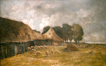Taco Mesdag Schaapskooi te Vries Olie op doek, 48 x 78 cm Catalogusnummer T126 Collectie Galerie Ruigewaert |