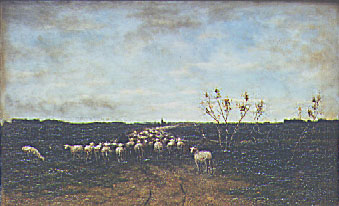 | Taco Mesdag Kudde op weg naar Vries Olie op doek, 40 x 64 cm Catalogusnummer T150 Particuliere collectie