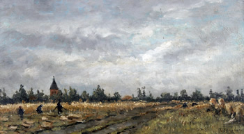 ![]() Taco Mesdag Landarbeiders met toren van Vries Olie op paneel, 35 x 20 cm Catalogusnummer T181 Van Zadelhoff Veilingen & Taxaties |