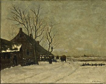 | Taco Mesdag Winterdag te Vries Olie op doek, 41 x 51 cm Catalogusnummer T7 Collectie Zeeuws Museum Foto Ivo Wennekes Middelburg Levende Meesters Groningen 1877 "Geschenk van eenige Middelburgsche Kunstliefhebbers"